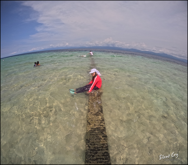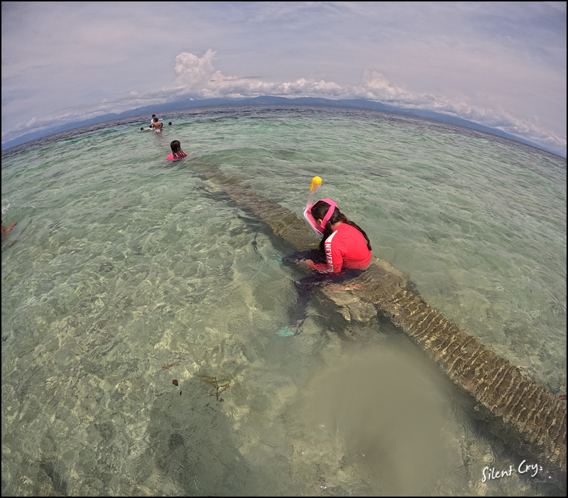 이미 입수 ㅋㅋ 이곳은 왼쪽 해변보다 물속에 산호 조각이 적은 편이다.