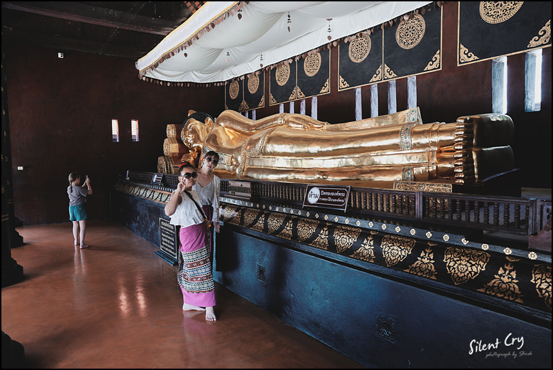 입구들어가면 금색이 찬란한 왓 프라싱을 볼 수 있다. (사실 여자들은 짧은 옷을 입고 사원 안을 들어갈 수 없다.)