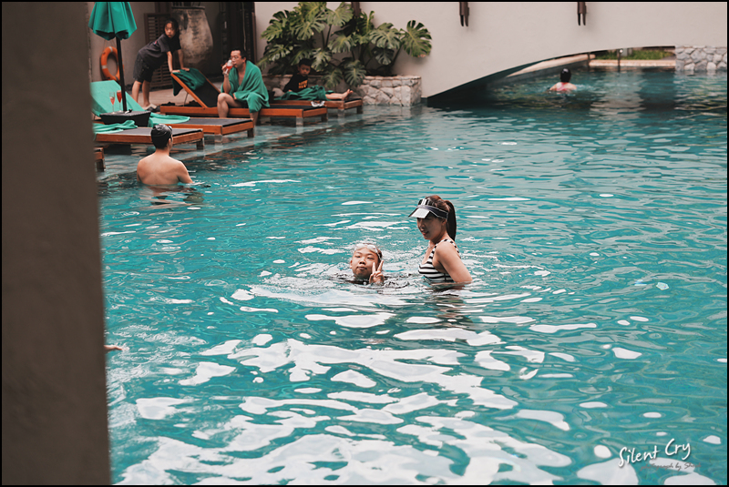 물이 생각보다 차다 ㅎㅎ 그래서 약간 미온수가 있는 풀에 모여있는 사람들