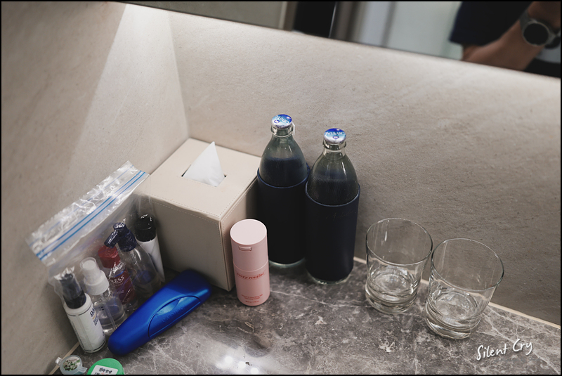 화장실 생수. 양치는 반드시 생수로 하기