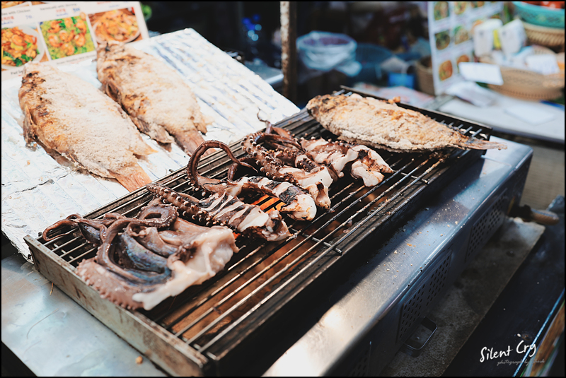오늘의 저녁은 꼬치, 팟타이, 오징어와 해산물, 문어구이