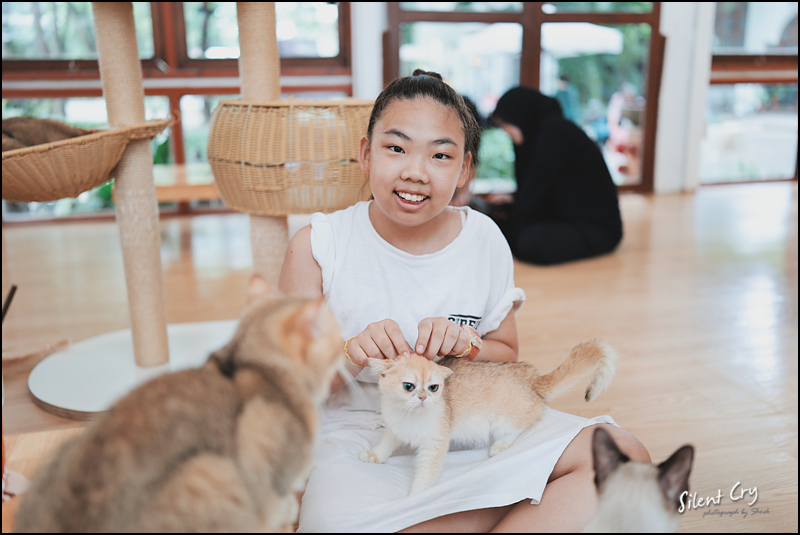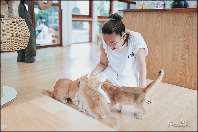 택시에 내려서 캣 카페로 간다.
