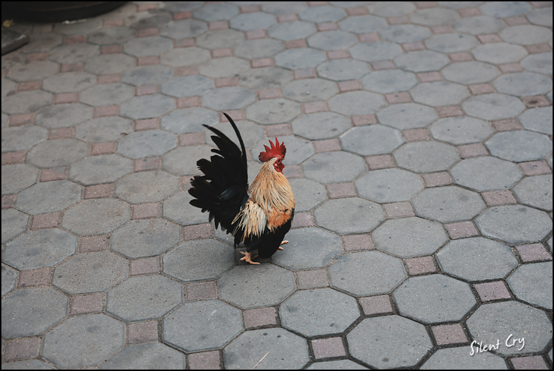 사원안에 닭들이 자유롭게 다닌다.